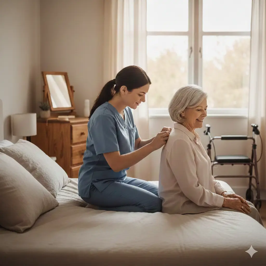 Assistance with showering, dressing, grooming, and other personal hygiene needs with dignity and respect.